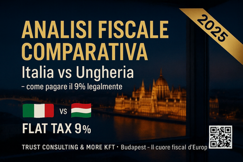 Scopri come ridurre la tassazione aziendale trasferendo la tua società in Ungheria. Analisi comparativa Italia–Ungheria 2025: flat tax 9%, normativa europea e vantaggi legali con Trust Consulting & More Kft – Budapest.